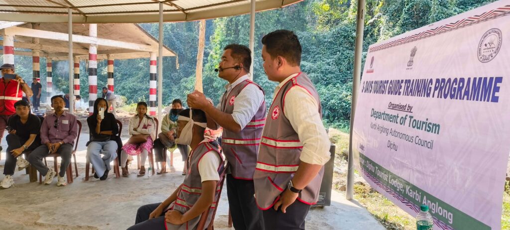 Field exposure makes learning practical and meaningful. At sites like Dikrupti Waterfall in Karbi Anglong and other tourist locations, guides learn that safety is paramount—managing visitor movement, understanding seasonal conditions and recognising natural warning signs. Training in first aid, disaster preparedness and wilderness response further equips them to handle emergencies in remote areas, forming the foundation of responsible nature-based tourism.